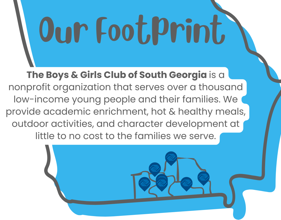 For 82 years, the Boys & Girls Club of South Georgia has provided the young people who need us most in our communities a place of safety, enrichment, and opportunity. Today, we serve over 1,000 children and teens daily across eight sites in Lowndes, Brooks, Lanier, and soon - Echols & Clinch Counties. Our doors are open each day after school and during the summer for children ages 5-18.